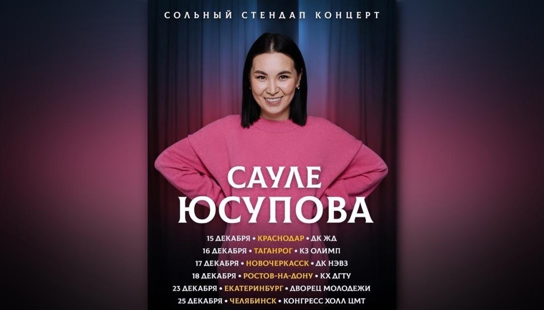 Кубанская столица станет первым городом в мини-туре Юсуповой, так что краснодарцы первыми услышат подготовленные шутки. Отличная возможность зарядиться весельем перед Новым годом: сама Сауле обещает, что «будет точно смешно».