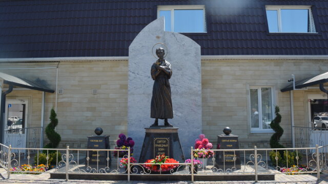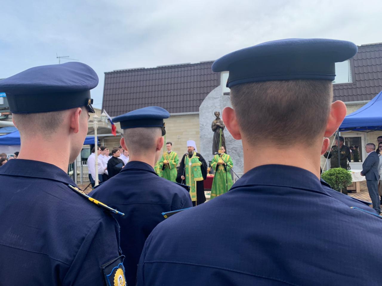 Год назад на въезде в столицу Кубани по Ростовскому шоссе открыли памятник святому Иоанну Русскому. В церемонии участвовали митрополит Екатеринодарский и Кубанский, мэр города, другие высокие гости и, что особенно интересно, курсанты Краснодарского высшего военного авиационного училища летчиков имени А. К. Серова.