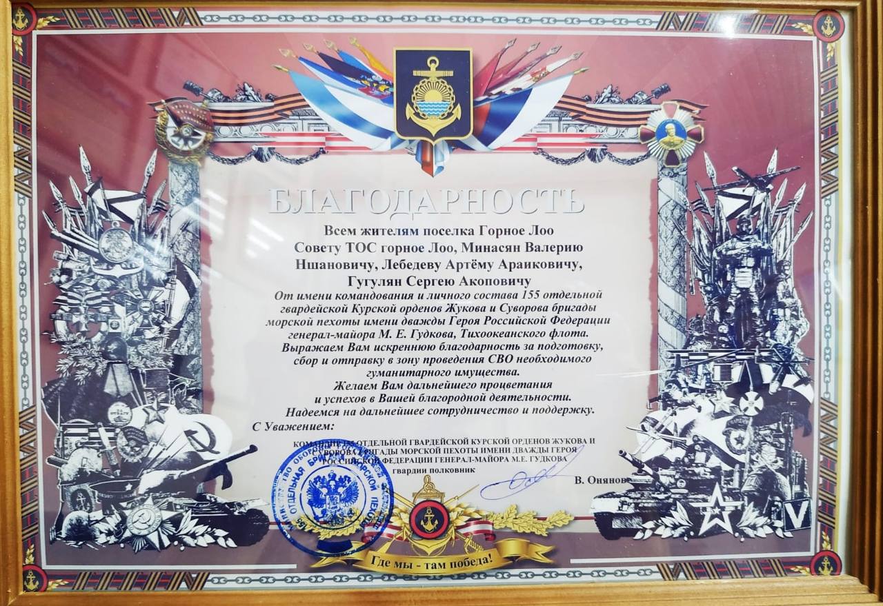 От имени командования одной из воинских частей жителям села и председателю Валерию Минасяну вручена благодарность за подготовку и отправку в зону СВО гуманитарного груза.