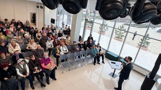 В рамках подготовки к реализации проекта совместно с администрацией Центрального округа в кинотеатре «Болгария» организовали выездное мероприятие. Перед участниками выступил заведующий отделением, врач высшей категории, кардиолог Иван Герасименко. Тема лекции актуальная для большинства людей пожилого возраста – профилактика сердечно-сосудистых заболеваний и возрастные изменения.
