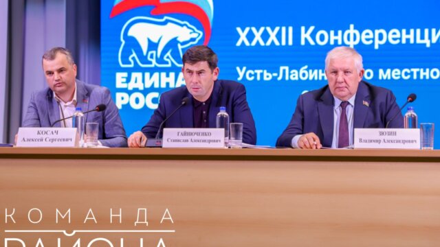В Усть-Лабинском местном отделении ВПП «Единая Россия» прошла 32 конференция, на которой присутствовали глава района Станислав Гайнюченко, депутат ЗСК Алексей Косач и замсекретаря местного отделения партии Владимир Зюзин.