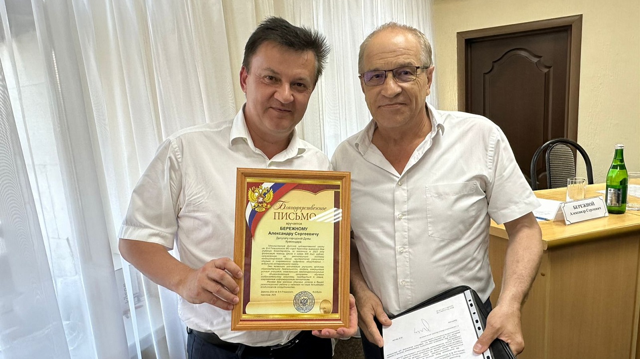 Депутат городской Думы Краснодара Александр Бережной провел рабочую встречу с Владимиром Мухиным — директором Детской художественной школы имени В. А. Пташинского.