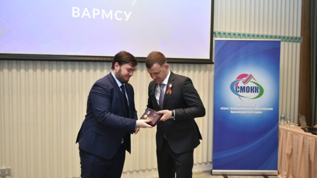 Глава города Краснодара Евгений Наумов награжден высшей наградой Всероссийской ассоциации развития местного самоуправления — медалью «За вклад в развитие местного самоуправления».