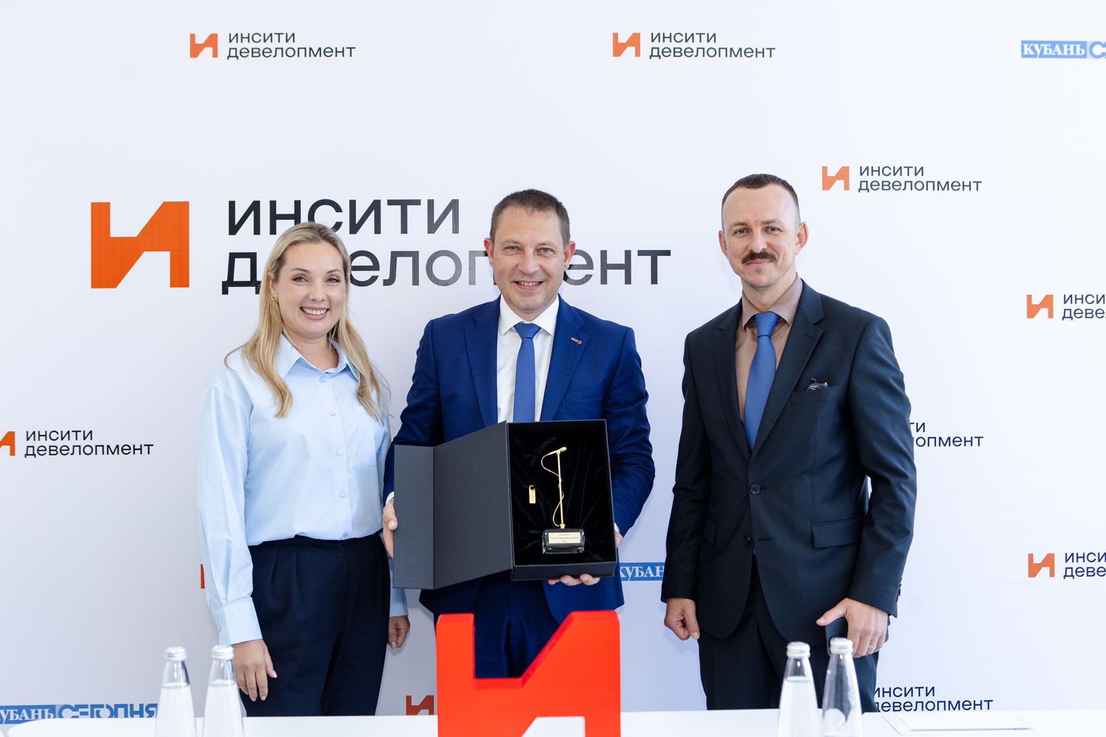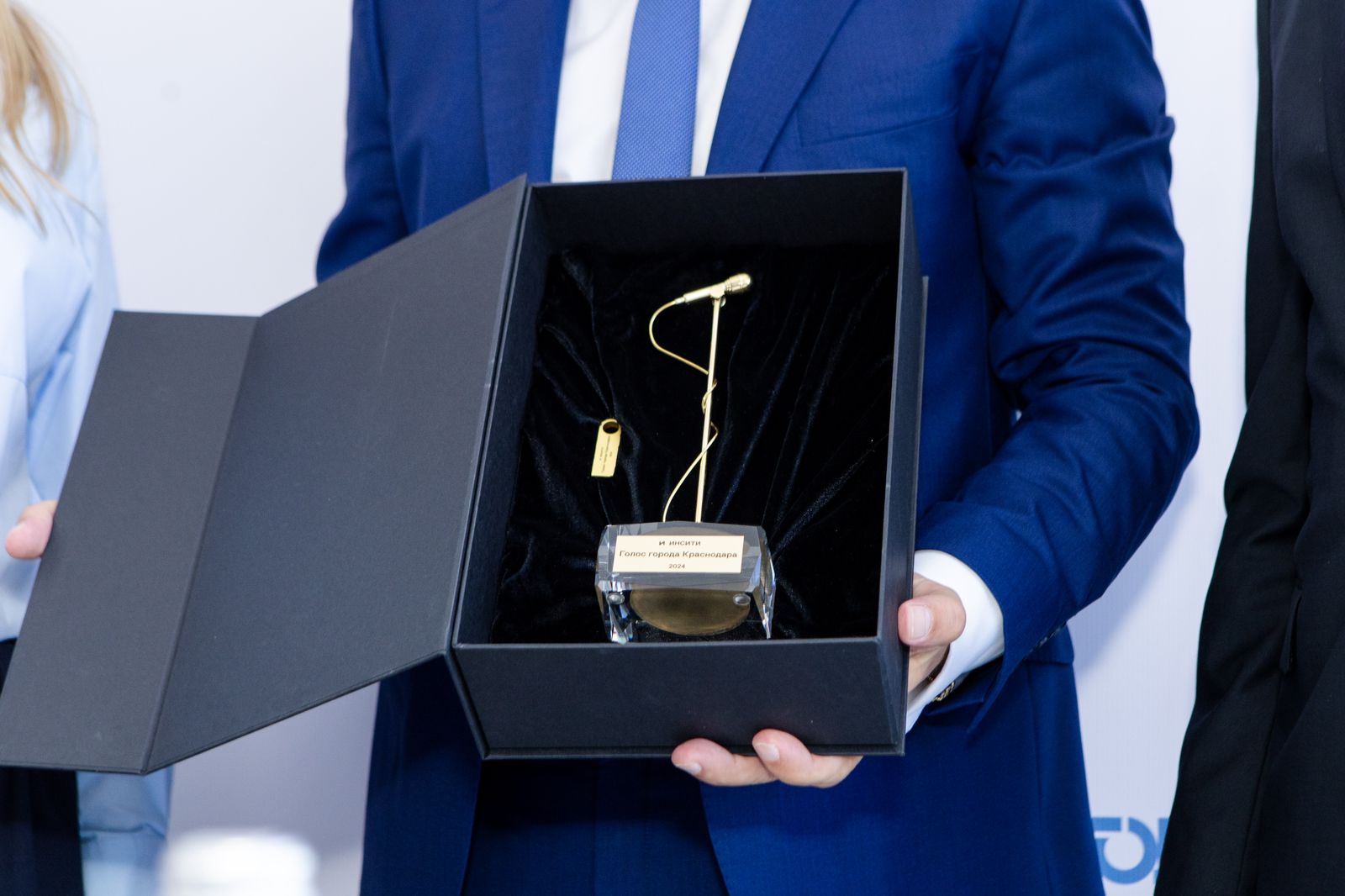 В медиахолдинге «Кубань Сегодня» прошла пресс-конференция, на которой генеральный директор ГК «ИНСИТИ» Андрей Шадрин презентовал «голос город» Краснодара. Подарок он вручил Павлу Лаврентьеву, главе департамента информационной политики администрации кубанской столицы. Запись голоса была интегрирована в статуэтку в виде микрофона, которую также подарили мэрии.