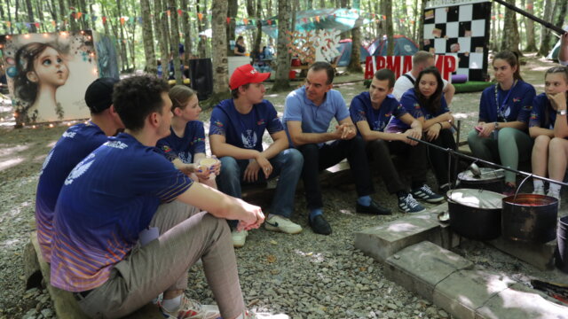 Губернатор Краснодарского края сказал, что в молодежный лагерь приезжает девятый год.