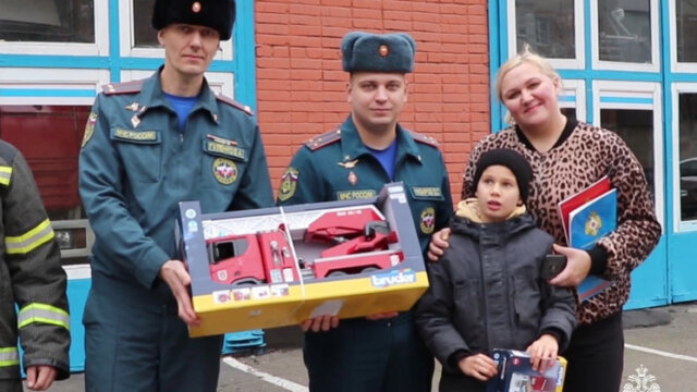 Но подарок оказался лишь началом настоящего новогоднего волшебства. Для Глеба была организована экскурсия в пожарную часть. Мальчик не просто увидел пожарную технику, он смог проникнуться атмосферой будней огнеборцев, узнать, как проходит дежурство, оценить мощь и сложность спецтехники, познакомиться с её оснащением. В завершении экскурсии, в дополнение к основной игрушке, Глебу вручили набор с миниатюрной моделью пожарной части – настоящий коллекционный подарок для маленького ценителя пожарного дела.