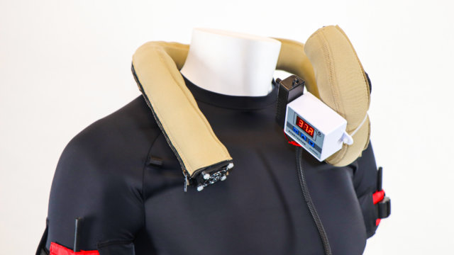 Есть два вида изделия — стационарное и переносное. Последнее представляет собой воротник, он подогревает воздух, который подается в область носа и рта, и человек его вдыхает.