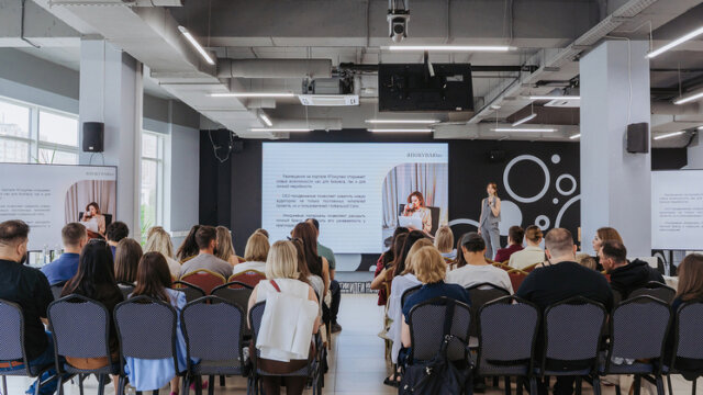 Ведущая мероприятия — Ольга Ченцова, представитель бизнес-игры «Код публичности», ментор личного бренда, основатель клуба «С.О.К».