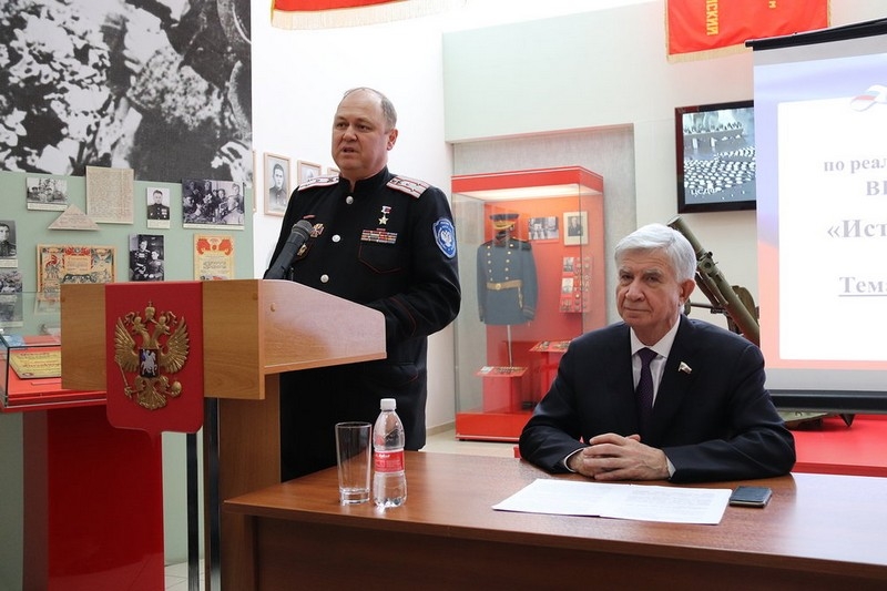 Он состоялся в Краснодарском историко-археологическом музее-заповеднике им. Е.Д. Фелицына 30 ноября. В зале Победы, где расположена экспозиция «Кубань в годы Великой Отечественной войны», собрались ветераны, Герои России, педагоги, сотрудники музея, школьники и студенты. Встреча «Служить России» прошла в рамках заседания круглого стола по реализации партийного проекта «Историческая память».