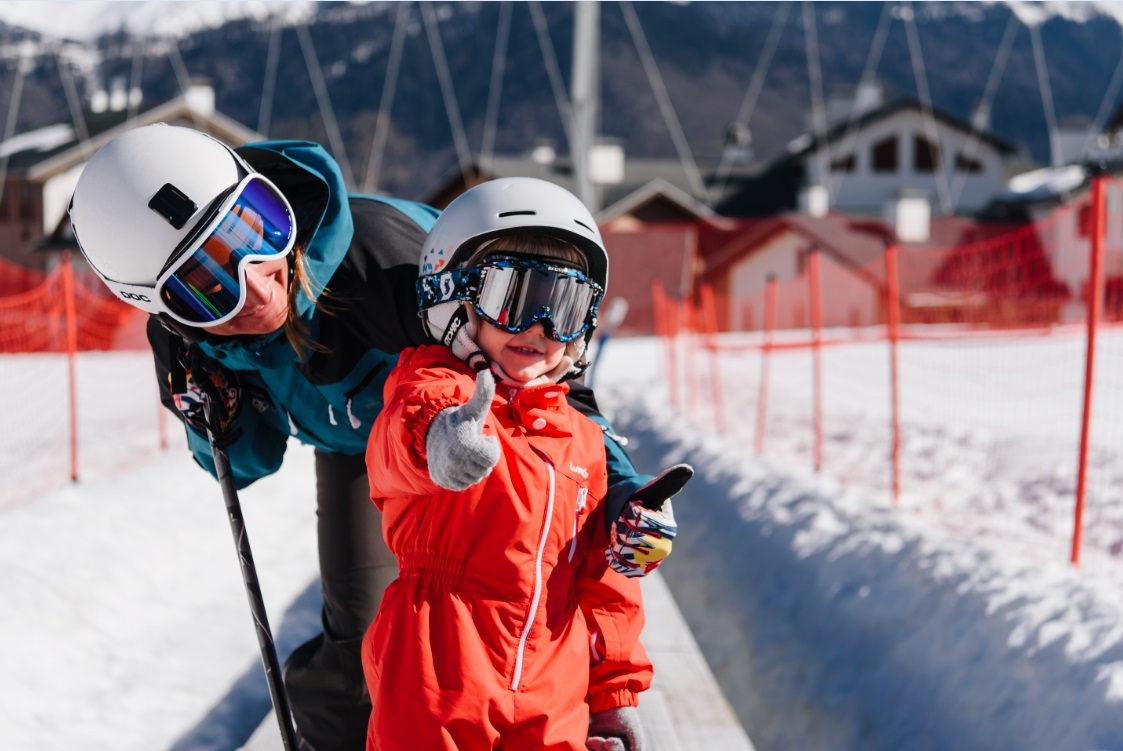 — Правильное оборудование имеет огромное значение для занятий. Лыжи обычно подбираются в зависимости от роста, до подбородка. В нашей школе мы самостоятельно подбираем лыжи для ребятишек. Всем обучающимся детям мы в обязательном порядке выдаем шлем бесплатно – это безопасность на склоне. Также, чтобы занятие было комфортным ребенка нужно «правильно» одеть. Обязательно иметь сменные носки. Желательно водолазку или кофточку с длинным рукавом и закрытым горлом. Под лыжные штаны – термобелье или хотя-бы колготки. Штаны и куртка не должны пропускать влагу, а с другой стороны должны сохранять тепло, потому что при занятиях ребенок, естественно, потеет. Перчатки должны быть непромокаемые. По возможности малышу необходимо иметь маску, чтобы не травмировать глаза от снега, который блестит на солнце.