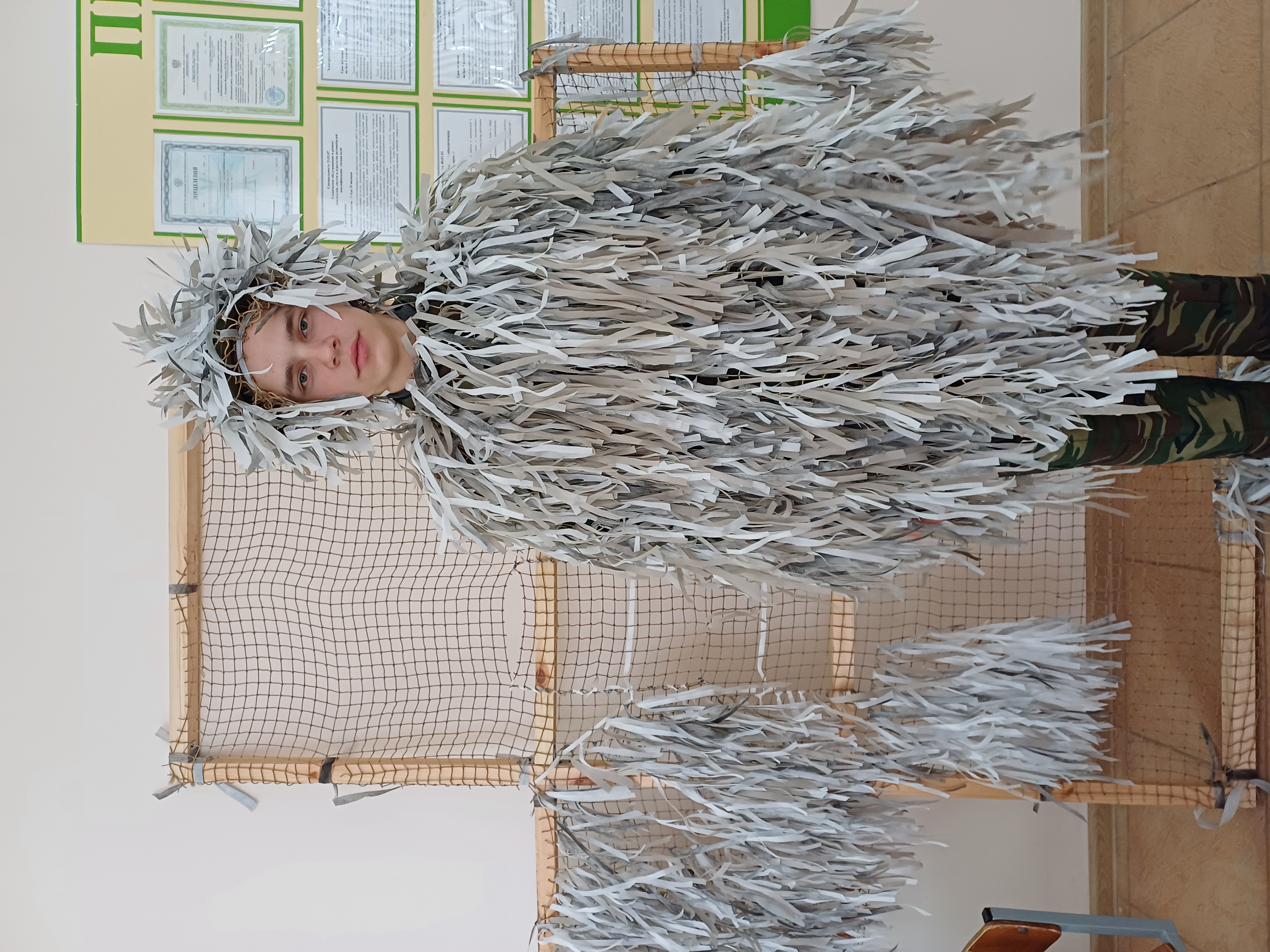 Студенты Брюховецкого аграрного колледжа научились делать костюм разведчика, в простонародье — «лешего». Объемный камуфляж скрывает фигуру стрелка и позволяет оставаться незаметным в лесу и поле.