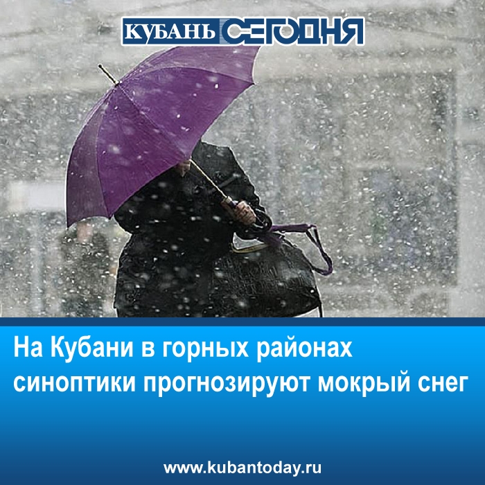 Сильные дожди в Краснодаре прогнозируются до субботы. А в горных районах Кубани выпадет мокрый снег. Кроме того ожидаются заморозки до минус 3 ночью и сильный ветер.