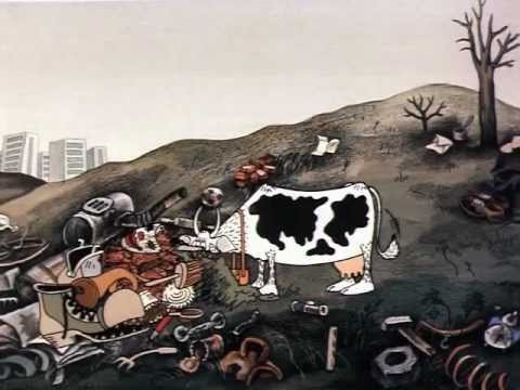 Вскоре за животным приходит хозяйка в противогазе, чтобы забрать его и подоить. Но какое молоко может дать корова после такой прогулки? Вместо свежего напитка хозяйке удается надоить только канистру… бензина. Полученное топливо женщина заливает в бак своей машины и уезжает по делам. Мультфильм в ироничной форме напоминает всем нам о том, что загрязнение окружающей среды не проходит бесследно и чревато серьезными, зачастую необратимыми последствиями.