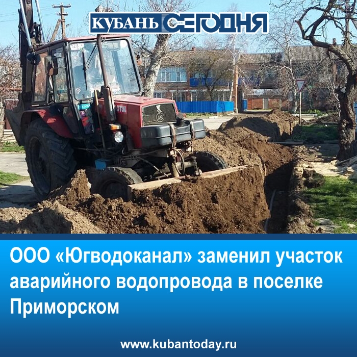 В ходе ремонтных работ специалисты Таманского филиала заменили старую металлическую трубу диаметром 76 мм на новую из пластика низкого давления диаметром 63 мм. Срок службы такой трубы составляет не менее 50 лет. Для работ была использована вся необходимая спецтехника. Также экскаватор предоставила администрация Сенного сельского поселения Темрюкского района. Обновление водовода позволило улучшить качество воды и нормализовать в целом водоснабжение поселка Приморский.