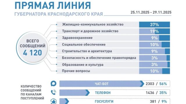 В десятку районов-лидеров по объему поступивших вопросов в соотношении к численности населения вошли Анапа, Темрюкский район, Туапсинский муниципальный округ, Краснодар, Динской, Щербиновский, Брюховецкий, Крымский и Абинский районы, а также Геленджик.