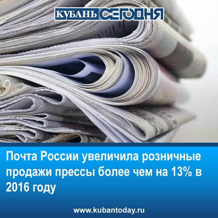 В 2016 году по предварительным данным объем розничных продаж газет и журналов в отделениях Почты России вырос на 13,4% по сравнению с 2015 годом и составил 4,6 млрд рублей. Тем самым удалось не только сохранить темпы роста прошлого года, но и превысить их – в 2015 году розничные продажи прессы в отделениях почты увеличились на 12,8% к уровню 2014 года.