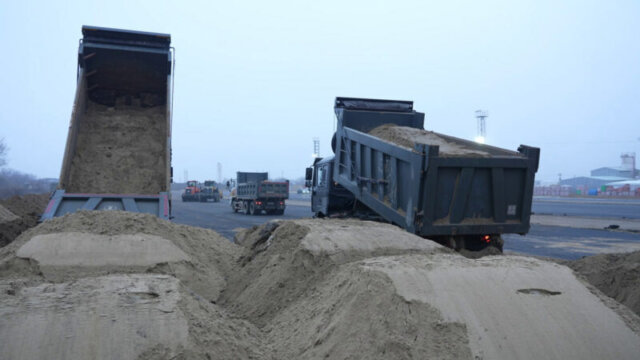 В хуторе Воскресенском создали временную площадку для хранения загрязненного песка, собранного с пляжей Анапы. В общей сложности 328 самосвалов доставили на площадку песок, а еще 53 грузовика привезли мешки с песчано-мазутной смесью, собранные в различных точках курортного города.