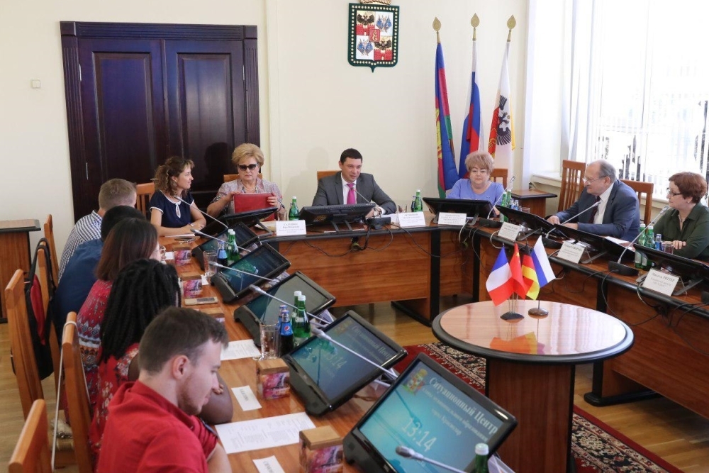Пять студентов из Карлсруэ, Нанси и Харбина в течение почти месяца — с 4 августа по 1 сентября проходят практику на предприятиях краевой столицы. Официальный прием молодежной делегации из городов-побратимов Краснодара прошел в городской администрации. Его провели глава города Евгений Первышов и председатель городской Думы Вера Галушко.
