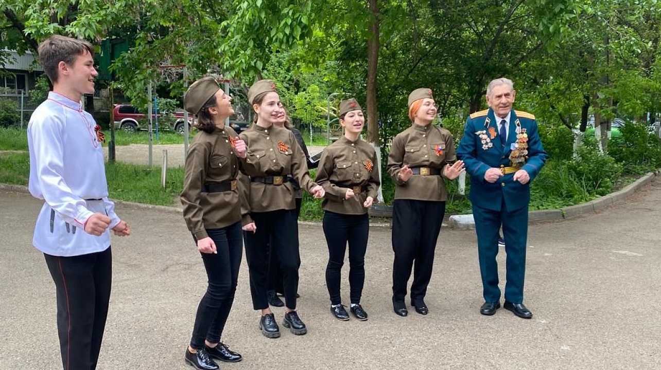Украдкой смахивали слезы и сами ветераны. Некоторые из них принимали творческий подарок от краснодарских артистов внизу, на площадке перед домом, другие смотрели концерт из окон своих квартир, не имея возможности выйти на улицу в силу возраста и состояния здоровья.