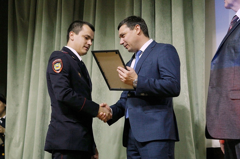 На мероприятии Евгений Первышов и Владимир Недилько наградили сотрудников и ветеранов полиции почетными грамотами и благодарственными письмами.