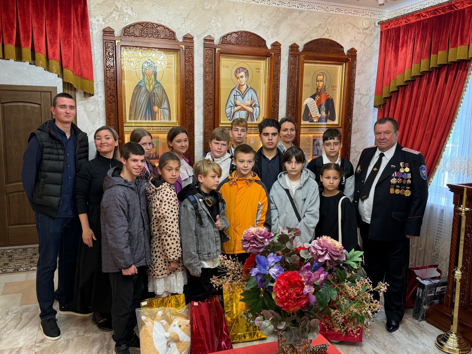 Ребята с радостью поехали в краевой центр. К тому же все они предварительно подготовили доклады о святых и прочитали их в музейном центре Геннадия Васильевича. Много интересного ребята узнали о жизни святого Иоанна Русского, памятник которому стоит у Ростовского шоссе, и установлен он трудами Геннадия Бугая с благословения на тот момент владыки Григория. Дети услышали рассказ о своем героическом земляке Иоанне Русском — Иоанн же родом из Малороссии, он не изменил православной вере даже ценой жизни, узнали о том, что Геннадий Васильевич, побывав в Греции, проникся любовью к этому святому молодому человеку, привез двенадцать икон Иоанна Русского в храмы Краснодара и подарил одну из них и нашему храму. Его стараниями в нашем храме Архангела Гавриила создан придел Иоанна Русского, в котором вы сегодня разговаривали с нашими воспитанниками воскресной школы. И в ремонте храма Геннадий Васильевич помогает. В общем, ребята приехали полные впечатлений, с подарками. Мне кажется, именно так воспитывается патриотизм: на примерах наших героических предков, на желании участвовать в воспитании будущих поколений всех сегодня живущих — меценатов, наставников, учителей, граждан Российского государства.