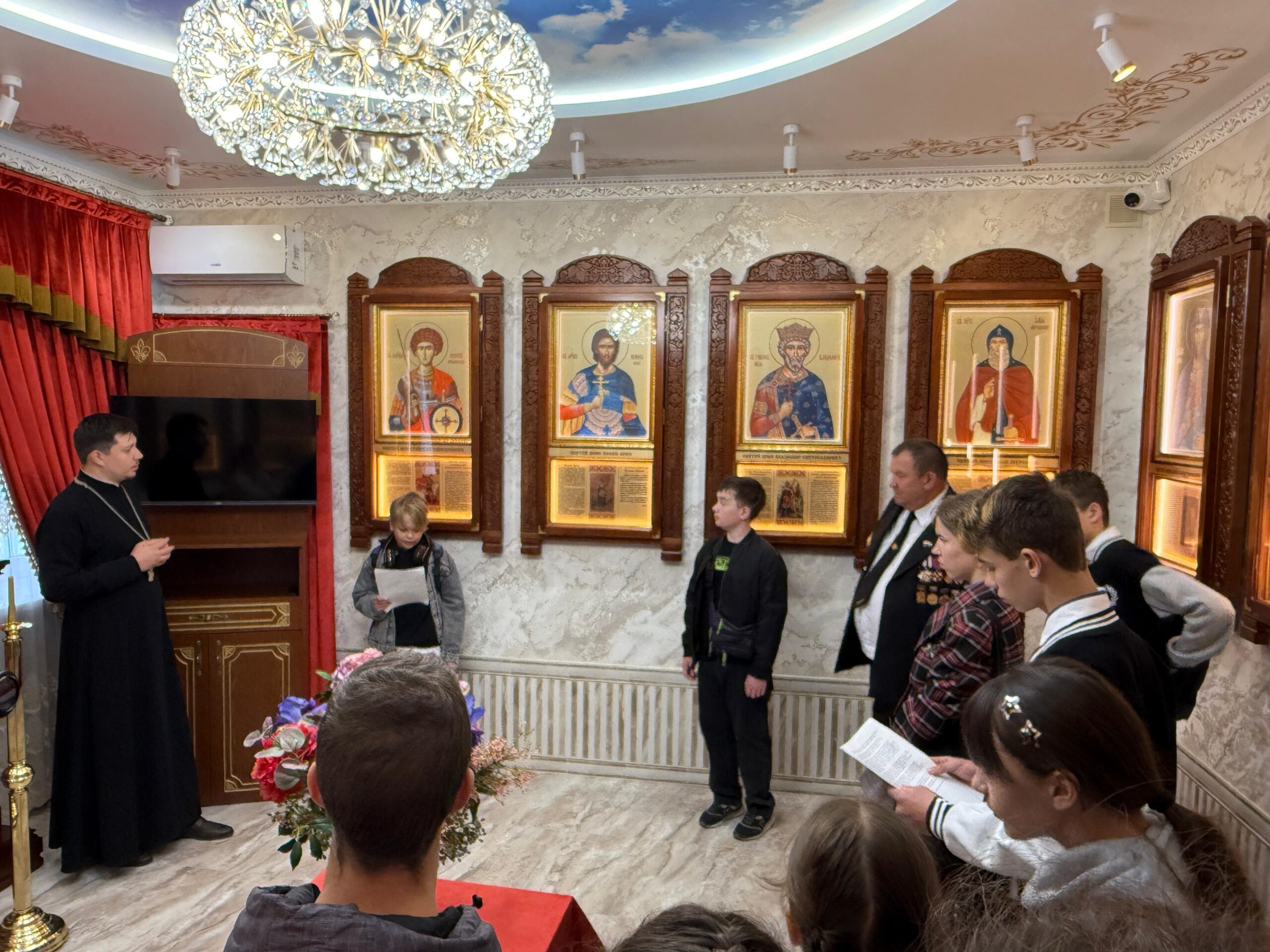 — В апреле этого года батюшка попросил меня вести уроки патриотического воспитания. В основу организации учебного процесса мы положили Месяцеслов, где поминаются наши святые. Особенно поминаем наших святых-воинов: Федора Ушакова, Пересвета, Александра Невского,— говорит Евгения Борисовна.