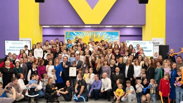Панно «Всей семьей – любим Краснодар» состоит из 50 картин, которые разрисовывались каждой семьей отдельно. Его общая площадь 100 000 квадратных сантиметров. На нем изображены знаковые достопримечательности кубанской столицы. Рекорд официально зарегистрировал глава Международного агентства регистрации рекордов «Интеррекорд», главный редактор Реестра рекордов России Владислав Копылов.