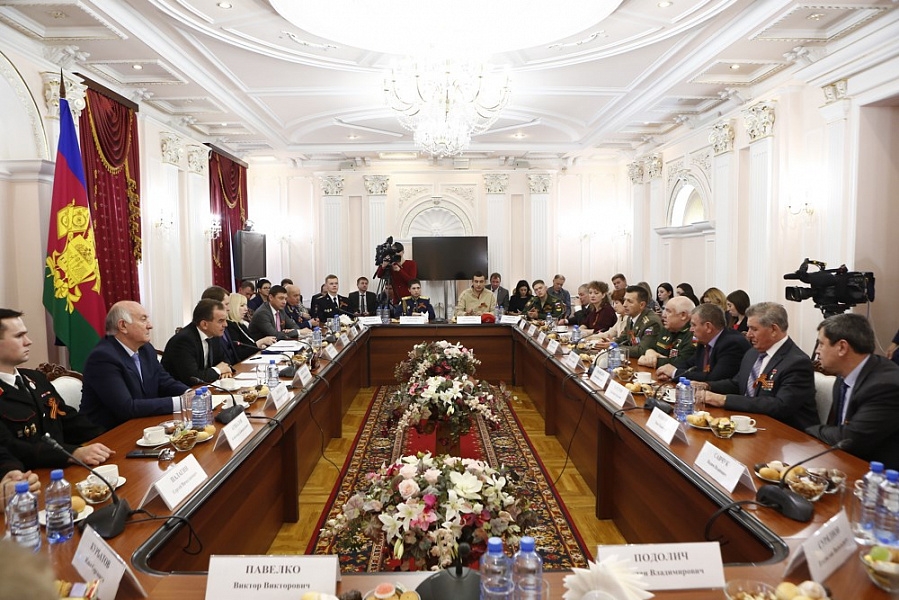 Глава региона Вениамин Кондратьев встретился с Героями Российской Федерации. Мероприятие прошло в Краснодаре в преддверии Дня Героев Отечества. В разговоре также приняли участие вице-губернаторы, вдовы героев, представители молодежных организаций.