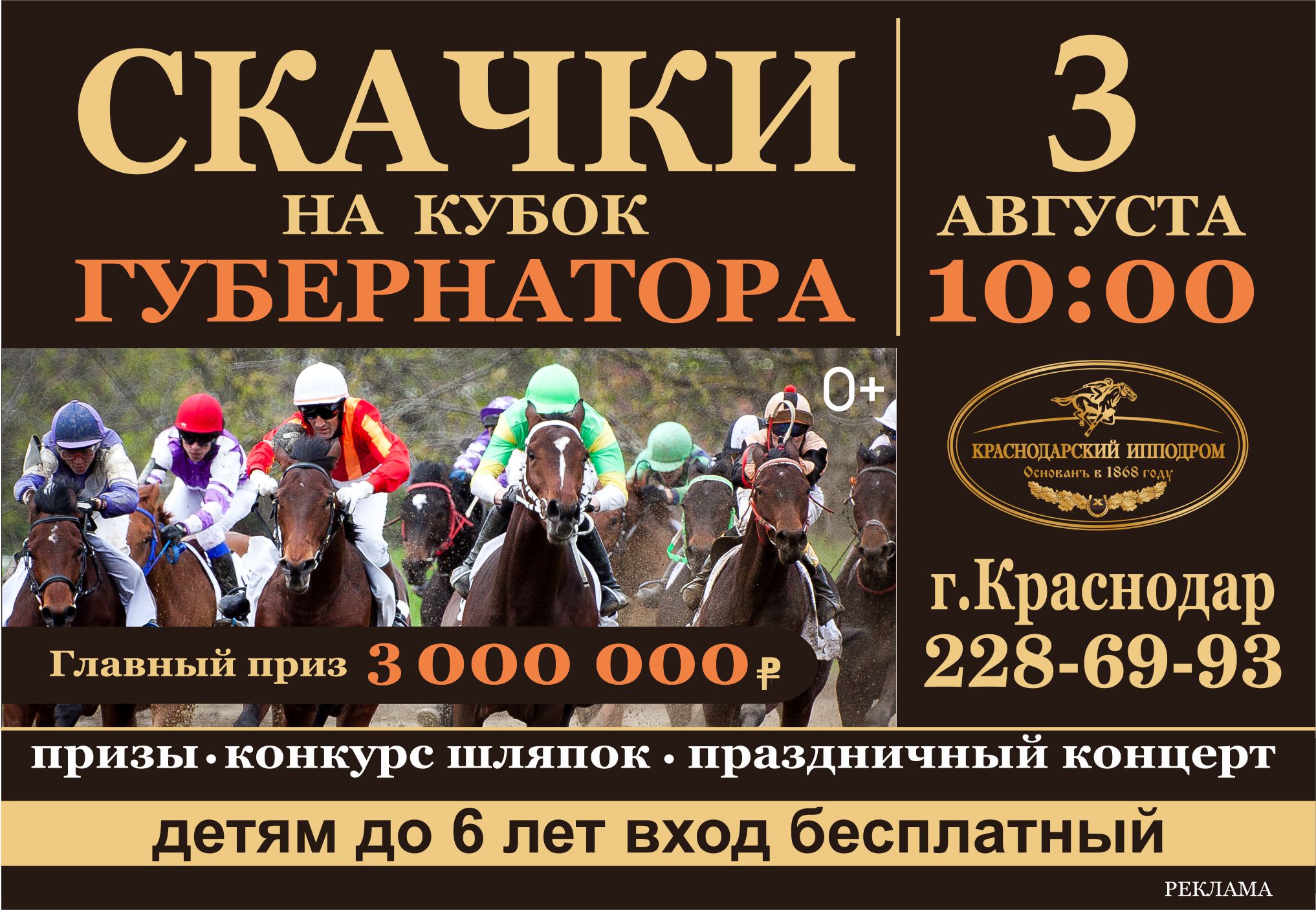 Билеты в кассах Ипподрома и у билетных операторов.