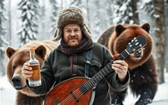 — Водка, балалайка, злые лица, медведь в качестве домашнего питомца, Владимир Владимирович Путин.