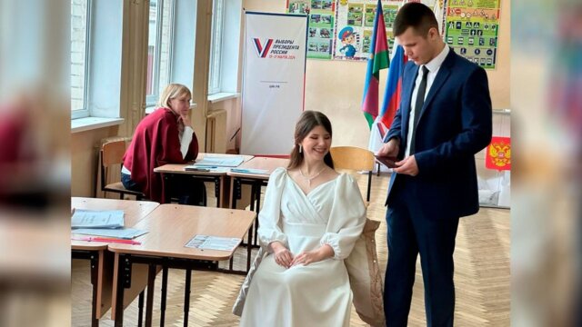 Избирательный участок в школе № 82 посетила большая семья – отдать свой голос за понравившегося кандидата пришли сразу 15 человек. А на участок № 2011 прямо из ЗАГСа прибыли молодожёны. В Телеграм-канале Западного округа появилась такая запись.