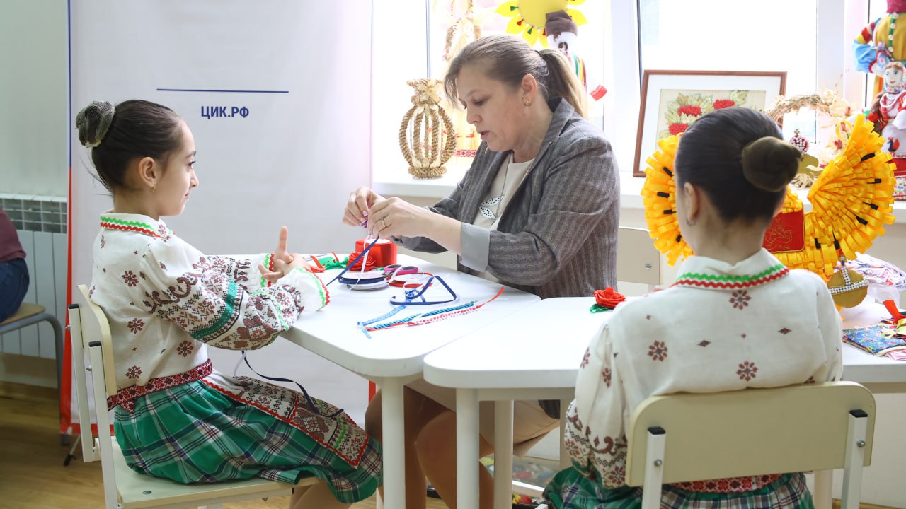 С концертными программами на избирательных участках выступают творческие коллективы. На участке № 2330 на улице имени Чапаева юные краснодарцы участвовали в мастер — классе по плетению ленточки в цветах российского флага.