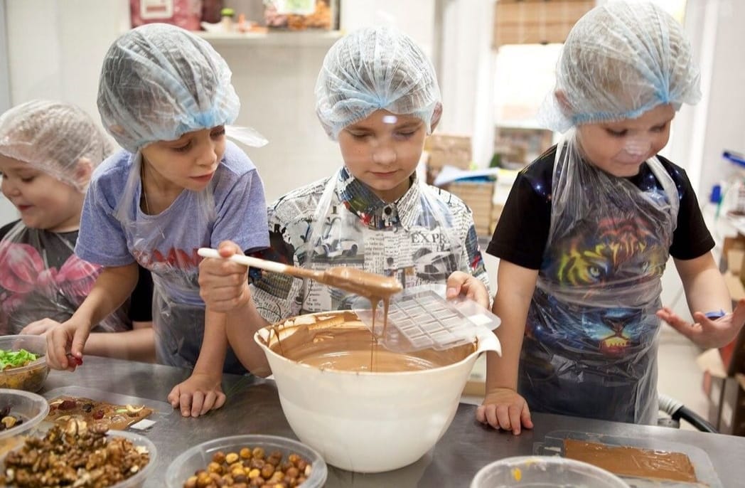 Для семейного отдыха отлично подойдет экскурсия в музейном зале и мастер-класс по изготовлению шоколадного сувенира, который забирается участниками с собой. В течение сорока — шестидесяти минут экскурсовод расскажет интересные факты из истории шоколада, о его полезных свойствах и способах определить качество продукта. А мастер-класс проводится в мастерской, отделенной от общего зала стеклянной стеной. Через эту стену можно наблюдать, как работают шоколатье, видеть, как отливается порция конфет или шоколадных плиток. Также во время мастер-класса родители могут пить кофе и наблюдать, как работают их детки, делать красивые фотографии или снимать видео. Пока фигурки застывают, дети усаживаются за большой стол с родителями и все сдают веселый экзамен. Вместе с упакованными сувенирами детям вручают именные сертификаты.