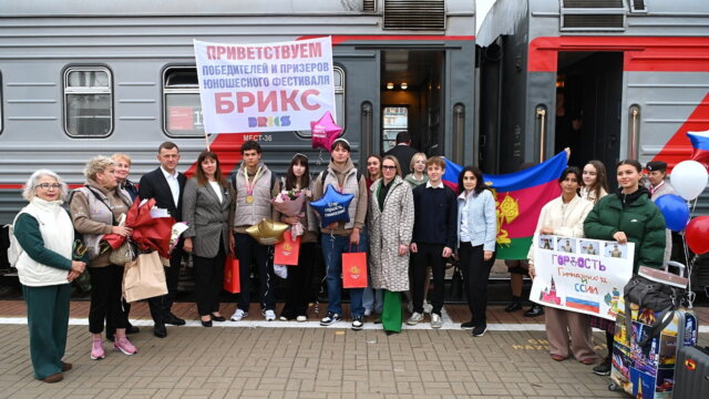 Торжественная встреча состоялась на перроне вокзала Краснодар I. Глава города лично поприветствовал школьников, которые в составе российской сборной завоевали три медали на престижной Международной олимпиаде БРИКС.