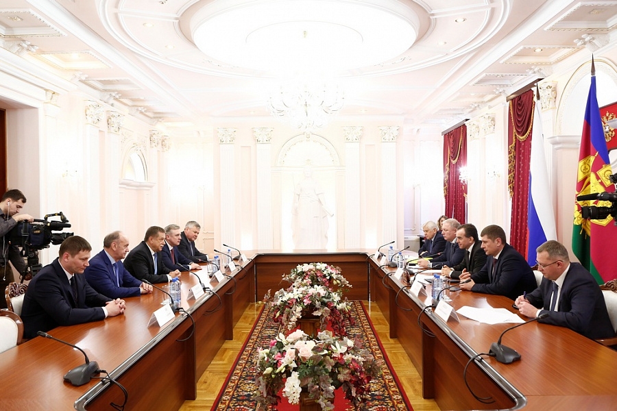 Губернатор Краснодарского края Вениамин Кондратьев встретился с заместителем председателя правления ПАО «Газпром» Сергеем Хомяковым.