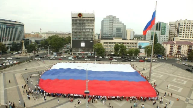В День Государственного флага РФ, благодаря поддержке мэра Краснодара Евгения Наумова и инициативы Молодой Гвардии в Краснодаре, горожане развернули гигантский российский триколор. Единство, патриотизм и гордость за свою Родину объединили жители города.