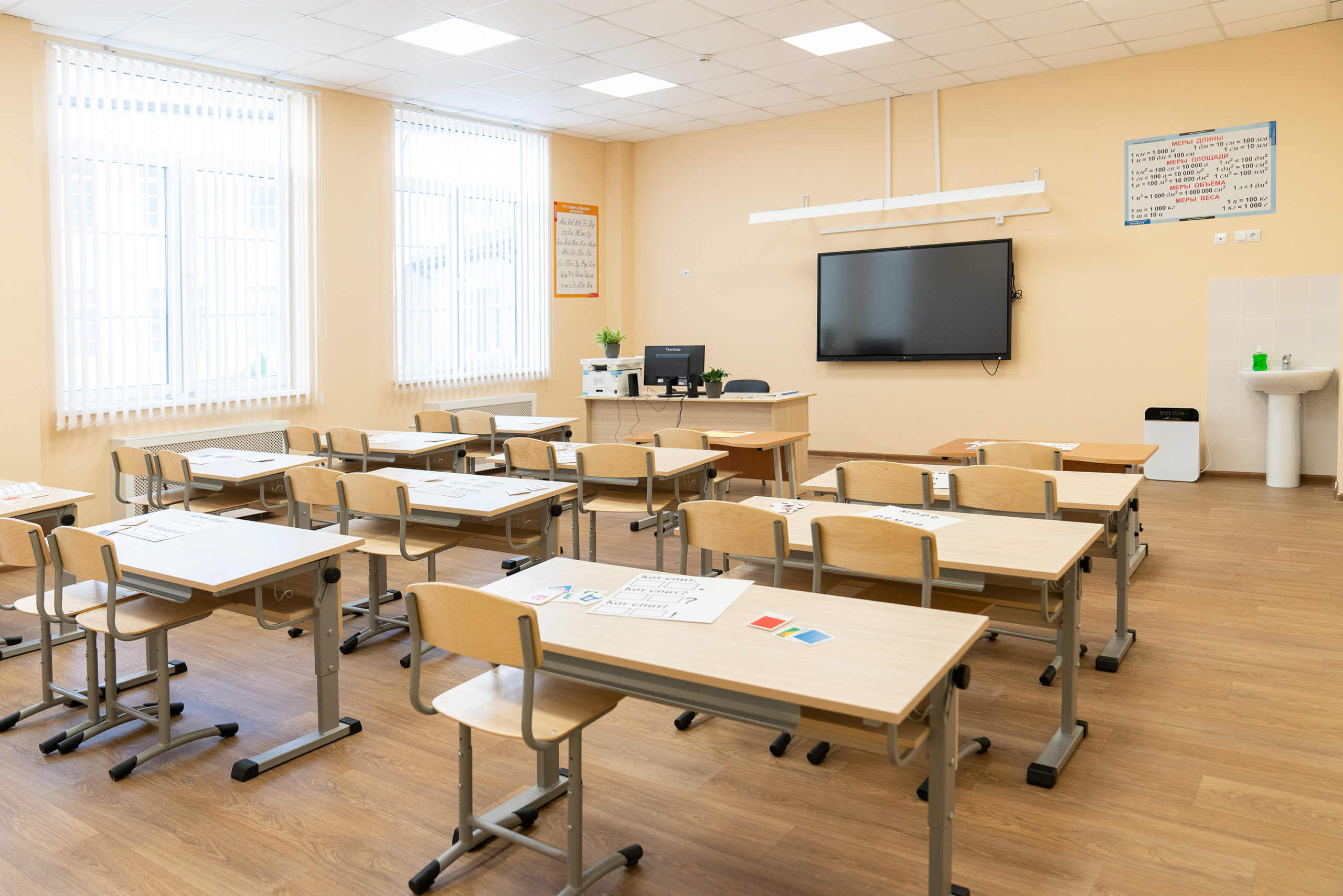 По уровню оснащения эта школа тоже эталон. Компьютеры, оргтехника, лабораторное оборудование, наглядные пособия, интерактивные доски, методическая литература и всё, что необходимо для организации эффективного и высокотехнологичного учебного процесса, здесь есть в полном объеме. Библиотека с фондом в тридцать тысяч книг и учебников дает ученикам огромные возможности для самостоятельного развития, а наличие выхода в Интернет еще больше их расширяет.