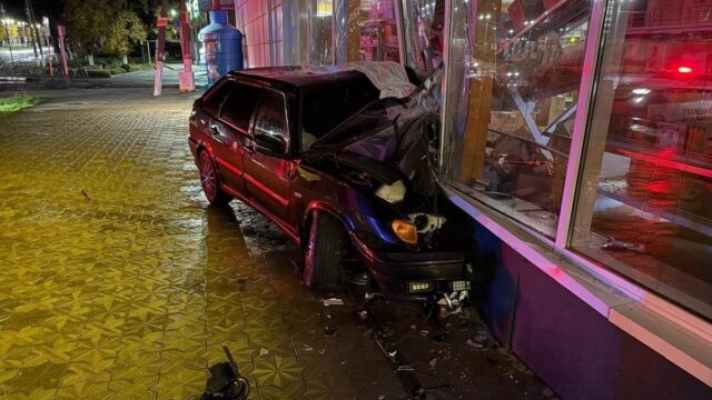 Ночью 30 октября в Гулькевичах случилось ДТП. 18-летний водитель легкового автомобиля «Лада» 211440 не справился с управлением и вылетел с дороги, врезавшись в витрину продуктового магазина.