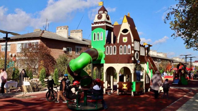 Особое внимание было уделено созданию условий для детей. В сквере были установлены три современных игровых площадки, на которых малыши смогут весело проводить время. Уложенное безопасное резиновое покрытие гарантирует безопасность игр.