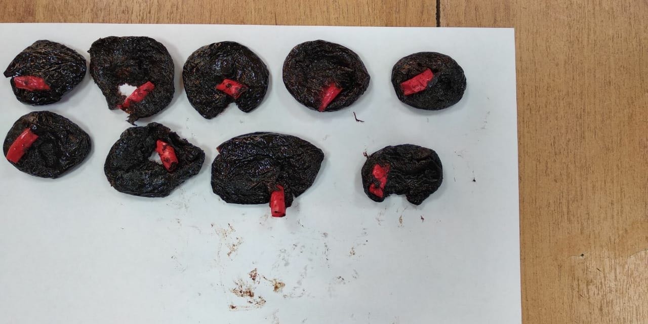 В ходе реализации оперативной информации, при досмотре продуктовой передачи от гражданки, прибывшей в учреждение на длительное свидание, были обнаружены и изъяты девять свертков с порошкообразным веществом.