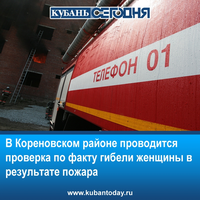 Следственным отделом по Кореновскому району СКР по краю проводится доследственная проверка по сообщению о смерти женщины (1960 г.р.) в результате пожара 13 марта 2017 года в частном домовладении по улице Лунева в хуторе Казаче-Малеванном.