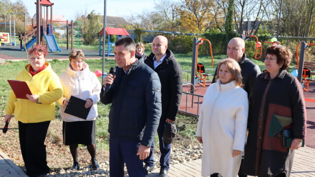 Другая площадка заработала на площади у Дома культуры поселка Первомайского Октябрьского сельского поселения. В ее торжественном открытии приняли участие глава района Александр Харитонов, его заместитель Ольга Худоерко, глава поселения Петр Завгородний, воспитанники местной школы.