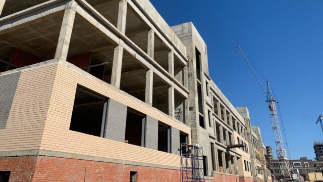 Ожидается, что общеобразовательное учреждение разместится на площади свыше 31 тыс. кв.метров и будет четырехэтажным. Строители уже приступили к возведению стен и колонн, кирпичной кладке стен, прокладке трассы электроснабжения. Монтируются также парапеты кровли.