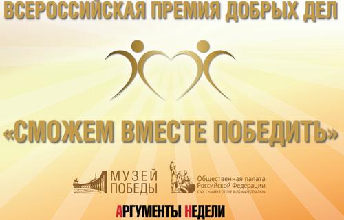 В Музее Победы, при содействии Общественной палаты РФ, состоится торжественное мероприятие, посвященное награждению победителей Всероссийской премии «Сможем вместе победить», основанной газетой «Аргументы недели». В зале «Жуков» соберутся волонтеры со всех уголков страны, а также знаменитые артисты, политики и общественные деятели.