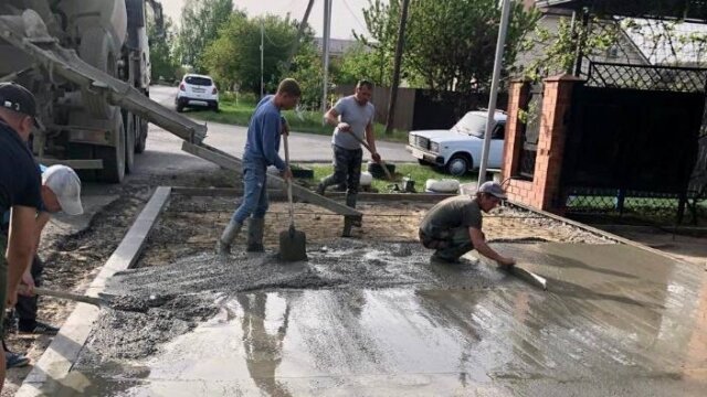 В сжатые сроки был выполнен весь комплекс по благоустройству: подготовлено основание, бетонирование площадки с армированием бетона, установили водоотливы и огораживающие элементы.