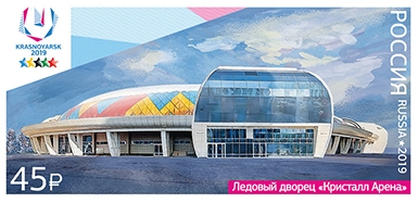 На почтовых марках изображены логотип Универсиады-2019 и спортивные объекты Красноярска, на которых пройдут соревнования: многофункциональный комплекс «Сопка», ледовый дворец «Кристалл Арена», стадион «Енисей» и конгресс-холл деревни Универсиады-2019. Марки номиналом 45 рублей в ближайшее время поступят в продажу в Краснодарский почтамт.