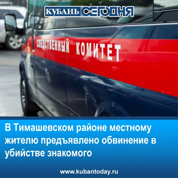 Тимашевским межрайонным следственным отделом СКР по краю 47-летнему местному жителю предъявлено обвинение в убийстве 27-летнего знакомого (ч.1 ст.105 УК РФ).