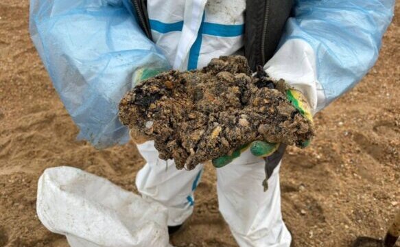 Нефтяное пятно днём 11 апреля зафиксировали в 11 км от побережья. Поздним вечером на берегу уже работали сотрудники МЧС. Работы продолжились утром 12 апреля, сообщили волонтёры.