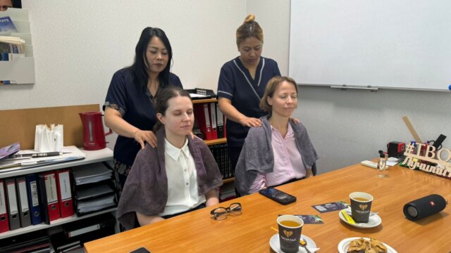 Она рассказала, что компания не только задает тренды в юриспруденции, но и мотивирует своих сотрудников, используя, в том числе нестандартные способы поощрения. Речь о спортивных мероприятиях – игра в настольный теннис, например, или шашки го, совместных обедах, обучении, поездках на отдых и многое другое. В этот раз, для сохранения здоровья сотрудников, решили использовать программу оздоровления и релаксации – специально для коллег, которые целый день проводят на работе в сидячем положении.