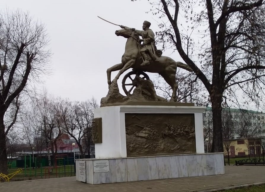 На снимке: памятник Героям битвы за Кубань в сквере Казачьей славы в Пашковском микрорайоне Краснодара.